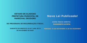 DO PROGRAMA DE RECUPERAÇÃO FISCAL Nova Lei Publicada! O Prefeito de Marechal Deodoro Claudio Filho, sancionou nesta quinta feira dia 14 de novembro de 2024,